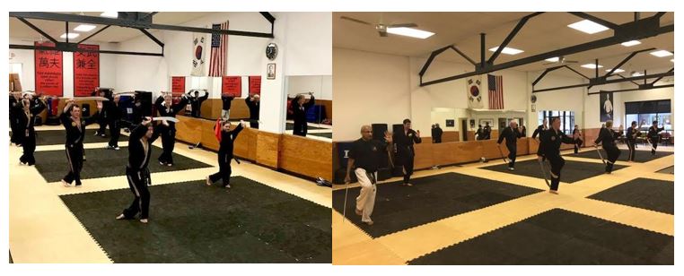 The building is 6400 square feet, with an additional 1500 square feet of secure, outdoor training area behind the school. We have the usual assortment of kicking bags, pads and targets and training aids you'd expect. The main training area is entirely covered with a rubber mat, and we have additional, thicker mats we use for throwing and falling.